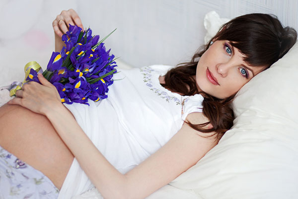С появлением животика маме приходится менять привычное положение во время сна: рекомендуется спать на левом боку, положив одну ногу на другую или поместив между ними небольшую подушку.