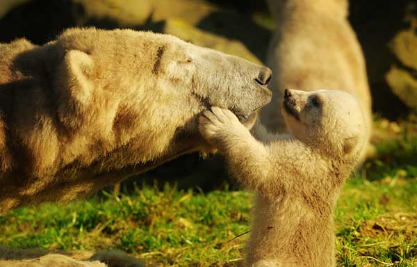На фотографиях изображены взрослые животные с их маленькими детенышами.