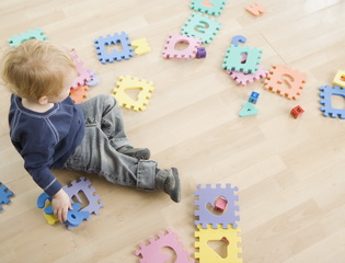 Наглядным материалом для занятий с крохой является набор достаточно крупных карточек (примерно 27 х 10 см) с написанными на них словами (шрифтом высотой 3,5 см) или точками и цифрами. В наборе, который вы изготовите для занятий чтением, должно быть много разных слов и понятий, с которыми малыш сталкивается каждый день или слышит о них: это и названия фруктов, овощей, предметов, животных, частей тела, одежды, профессий, имен, а также союзы, частицы и предлоги.