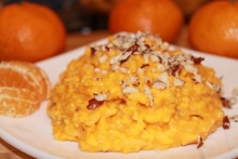 В кашу добавить промытый рис, огонь увеличить, варить до готовности риса. Когда количество воды испарится настолько, что будет лишь чуть-чуть покрывать тыкву с рисом, в кашу нужно будет добавить молоко, щепотку соли и сахар по вкусу. Варить, помешивая, до закипания молока. Далее уменьшить огонь и варить, помешивая, еще минут 5, пока каша совсем не разварится. В тарелку с горячей тыквенной кашей добавить кусочек сливочного масла.