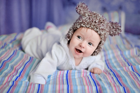 Иван, 3 месяца Это мой сыночек Ванечка. Мы пока маленькие, но уже любим примерять разные шапочки. Вот на этом фото мы в шапочке медвежонка, модной в этом сезоне. |
