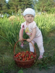 Анечка, 1,10 Анюта собрала первый урожай клубники |