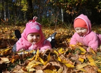 Настенька, 4 месяца Настенька(4 месяца) и Машенька(6 месяцев) просто в восторге от осеннего листопада! |