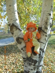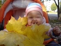 Марьяна, 4 месяца Очень интересно маленькой малышке сидя у мамочки на ручках изучать окружающий мир! Осень - она ведь такая интересная и яркая пора! |