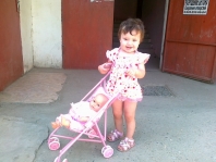 Настюша, На фото 1 год и 4 мес. Куклу Настю нам подарили, когда Настена родилась. Вот она и стала любимой подружкой. |