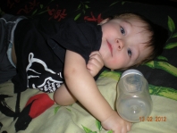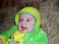 Егор, 6-7 месяцев вообще нам уже 1 годик и 7 месяцев. Но на этом фото месяцев 6-7... Папа и мама купили костюмчик и Егорушке он оч понравился)))) |