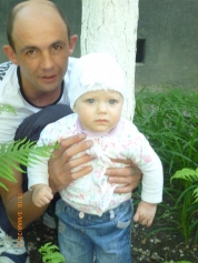 Виктория, 9 месяцев Я с папай прячюсь в саду от мамы. |