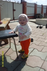 Евгения, 9 месяцев Женечке так все интересно, что она уже 2 шишки набила, пытаясь все все вокруг посмотреть!Глаз да глаз нужен!!! |