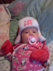 София, 6 месяцев На прогулках зимних Кусается мороз! Я от него спрячу Щечечки и нос! |