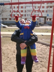 Никита, 2 годика Мы с папулей на зарядке во дворе,всех сильней! |