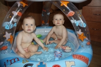 Бассейн,вода, игрушки и брат с сестричкой.Всё что надо для летнего веселья)))