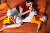 У полугодовалых деток уже активен хватательный навык. Дайте карапузу в ладошку разнообразные по форме и текстуре предметы. А с 7–8 месяцев можно дать перебирать крупные бусины, обучить держать ложку и чашку. Игры типа «Сорока-сорока», «Ладуш-ки» и «Коза рогатая» – прекрасный тренажёр для развития тонких и слаженных движений. А они в свою очередь напрямую связаны с речевыми центрами и активно их стимулируют. А вот читая потешки на иностранном языке, вы добьётесь исключительного лингвистического эффекта!