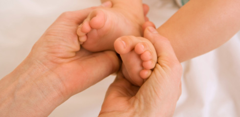 Так же очень полезно поставить ребенка на ножки и дать постоять на катающемся под ним мяче, а затем попрыгать. И совсем уж высший пилотаж: положите ребенка на спинку, раскачайте из стороны в сторону мяч, а затем путем скрещивания бедер (когда одно бедро резко заходит на другое) переверните ребенка на животик. Тем же образом вернитесь в исходное положение. Упражнения на мяче отлично расслабляют мышцы ребенка и тренируют чувство равновесия, укрепляя вестибулярный аппарат.