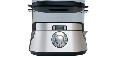 - Пароварка: тип управления. Большая часть пароварок, имеет механический тип управления. Это значит, что время работы прибора устанавливается с помощью переключателя-таймера, который нужно повернуть на соответствующее количество делений. Пароварки с электронным типом управления имеют кнопочную панель и табло, на котором отображаются выбранные режимы. Эти приборы более функциональны. К примеру, вы можете установить отсрочку времени приготовления (delay time) до 12 часов, и тогда ваша пароварка начнет готовить не сразу, а через определенное время. Или установить функцию поддержания теплого состояния (keep warm), то есть после того, как время приготовления истекло, агрегат не отключается, а переходит в режим подогрева.