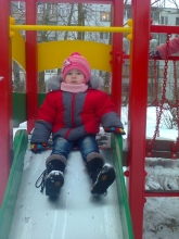 всю зиму ходим на детские площатки, и то что они в снегу нам нравится ещё больше. Но только недавно мы пересилили страх перед спуском с горок.