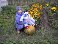 Апакин Степан, 3 месяца Осенняя прогулка в сентябре. Я гуляю, а бабушка убирает урожай. |