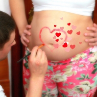 Астап , 6м и 2 недели Папа Александр рисует на животике своей жене |