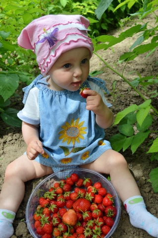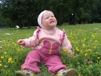вера, 1 год 4 месяца Летний солнечный денек. Верочка гуляет в траве. |