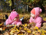 Настенька, 4 месяца Настенька(4 месяца) и Машенька(6 месяцев) просто в восторге от осеннего листопада! |