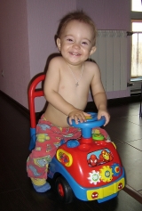 Настюша, На фото 1 год и 4 мес. Куклу Настю нам подарили, когда Настена родилась. Вот она и стала любимой подружкой. |