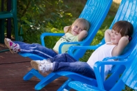 Александра и Анна, 2.5 года и 4 года - Ань, ну, что-то не загорается у нас, может все-таки разденемся и на солнце выйдем? |