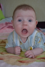 Егор, 6-7 месяцев вообще нам уже 1 годик и 7 месяцев. Но на этом фото месяцев 6-7... Папа и мама купили костюмчик и Егорушке он оч понравился)))) |
