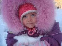 Ксения, 4 месяца Это моя первая зима!И почему всё такое белое...и так холодно.... |