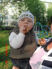 Платон, 2 года 9 мес платон ест поп-корн на улице |