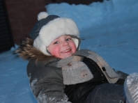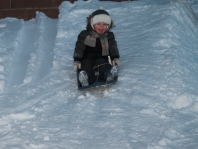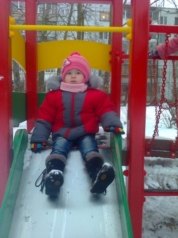 Полина, 2,7г всю зиму ходим на детские площатки, и то что они в снегу нам нравится ещё больше. Но только недавно мы пересилили страх перед спуском с горок. |