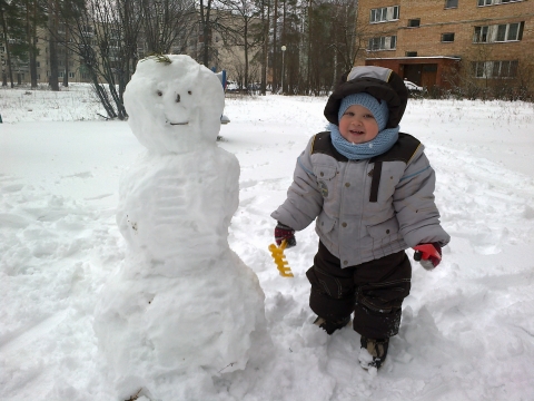 Иван, 1 год 3 мес. Первый Снеговик из первого снега. |