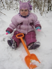 Катюша, 1 год 2 месяца Я гуляла, я копала и немножечко устала. Посижу чуть-чуть в снегу, встану, дальше побегу! |