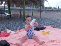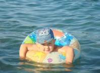 Андрюша, 2 г. 11 мес. Андрюшке очень понравилось на море, даже волны его не пугали. А на кругу он чувствовал себя спокойно и радовался тёплому солнышку. |